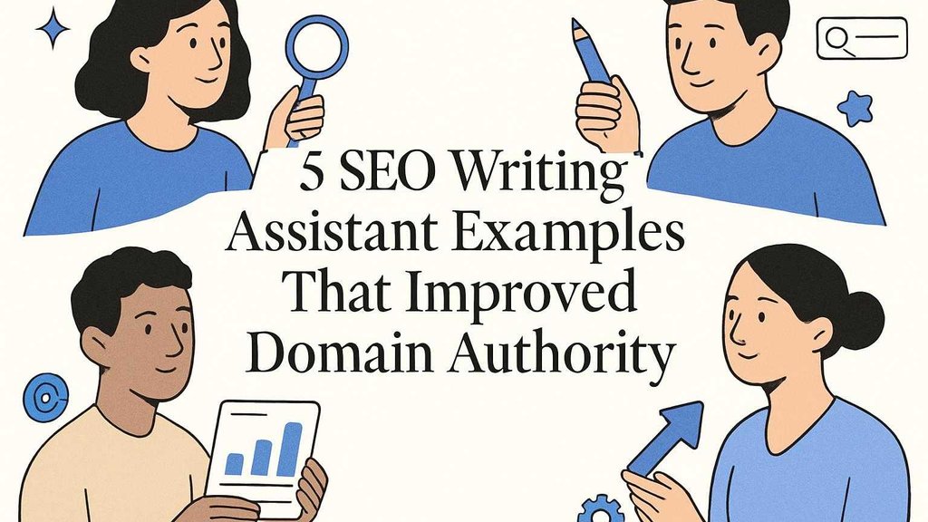 A collection of five real-world SEO writing assistant examples that helped improve Domain Authority—what changed in DA lately, a use-case map for choosing the right workflow, topic clustering/refresh/brief-building/linkable-asset/guardrail patterns, and a results scorecard with a viability judgment checklist.